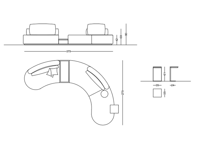 Los volúmenes redondeados y el tapizado en tonos cálidos invitan a la calma, mientras los respaldos asimétricos permiten configurar diferentes composiciones con naturalidad. Alba es equilibrio en movimiento: una pieza que se adapta, respira y transforma el espacio con elegancia orgánica.