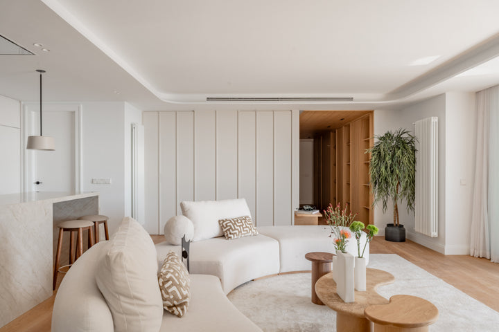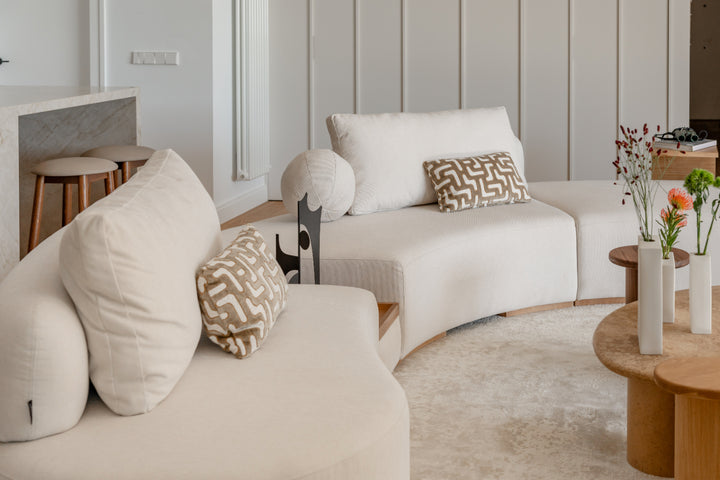 Bruma une la flexibilidad de un sistema modular con la suavidad de las líneas curvas que caracterizan a la colección. Su forma sinuosa, inspirada en Serena y Luz, se combina con la funcionalidad de Verso para crear un sofá contemporáneo de espíritu artesanal. Los volúmenes redondeados y el tapizado en tonos cálidos invitan a la calma, mientras los respaldos asimétricos permiten configurar diferentes composiciones con naturalidad. Alba es equilibrio en movimiento: una pieza que se adapta, respira y transforma el espacio con elegancia orgánica.