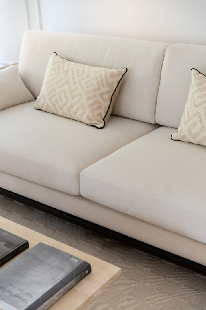 Los cojines generosos aportan confort sin renunciar a la elegancia del trazo, mientras los detalles artesanales evidencian el cuidado en cada unión.